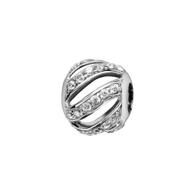 Charms coulissant argent rhodié boule bandes ajourées oxydes