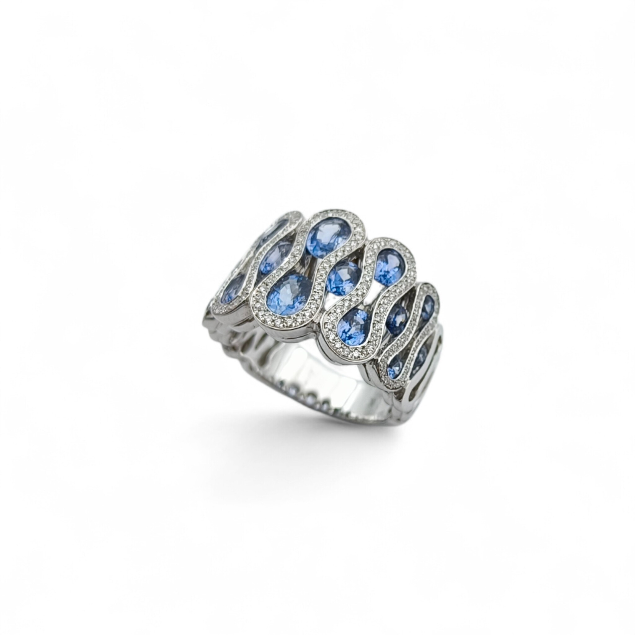 Bague Waskoll Wave or blanc, Saphirs et Diamants
