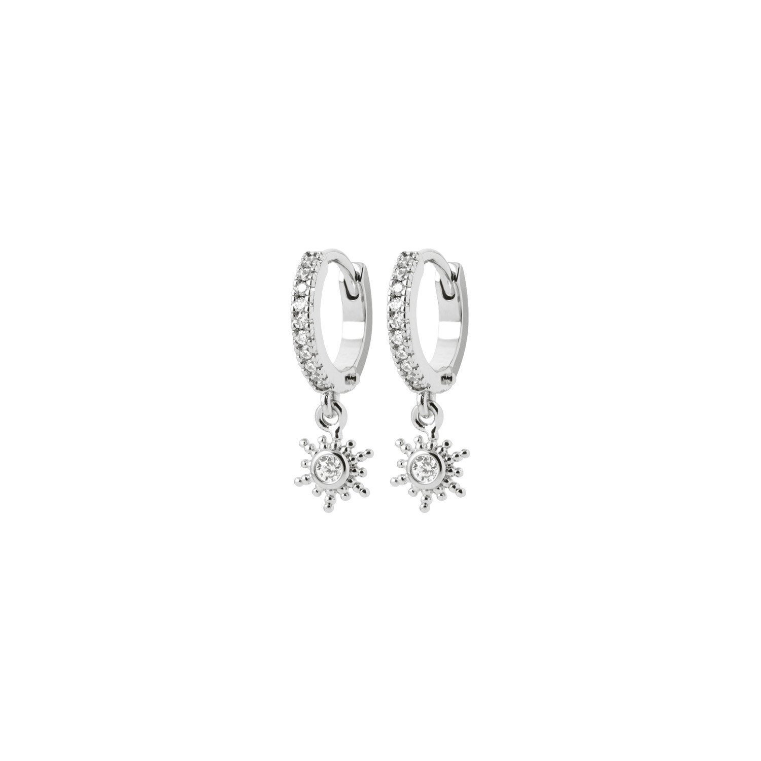 Boucles d'oreille pendantes créoles en argent rhodié et oxydes de zirconium